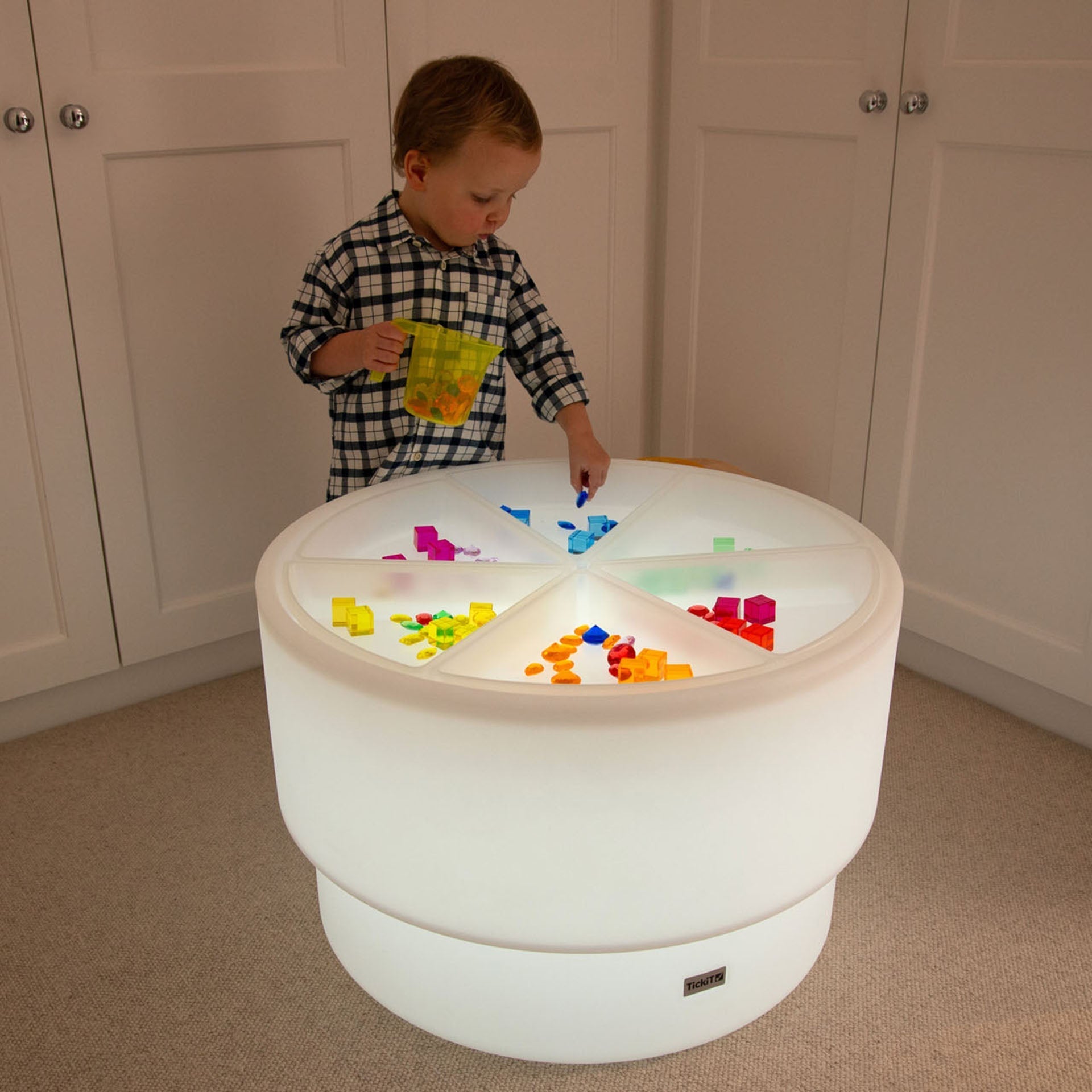 Children can delve into the world of messy play and discover the properties of sand, confetti, water, wood chippings or any medium you decide to place into our tickit® Discovery Trays. Made from Polypropylene they are easy to manage, clean, lift and empty, making them ideal for encouraging collaborative group play as well as individual play. Fitting into our Sensory Mood Discovery Tables, a captivating sensory experience can be created easily for your child.