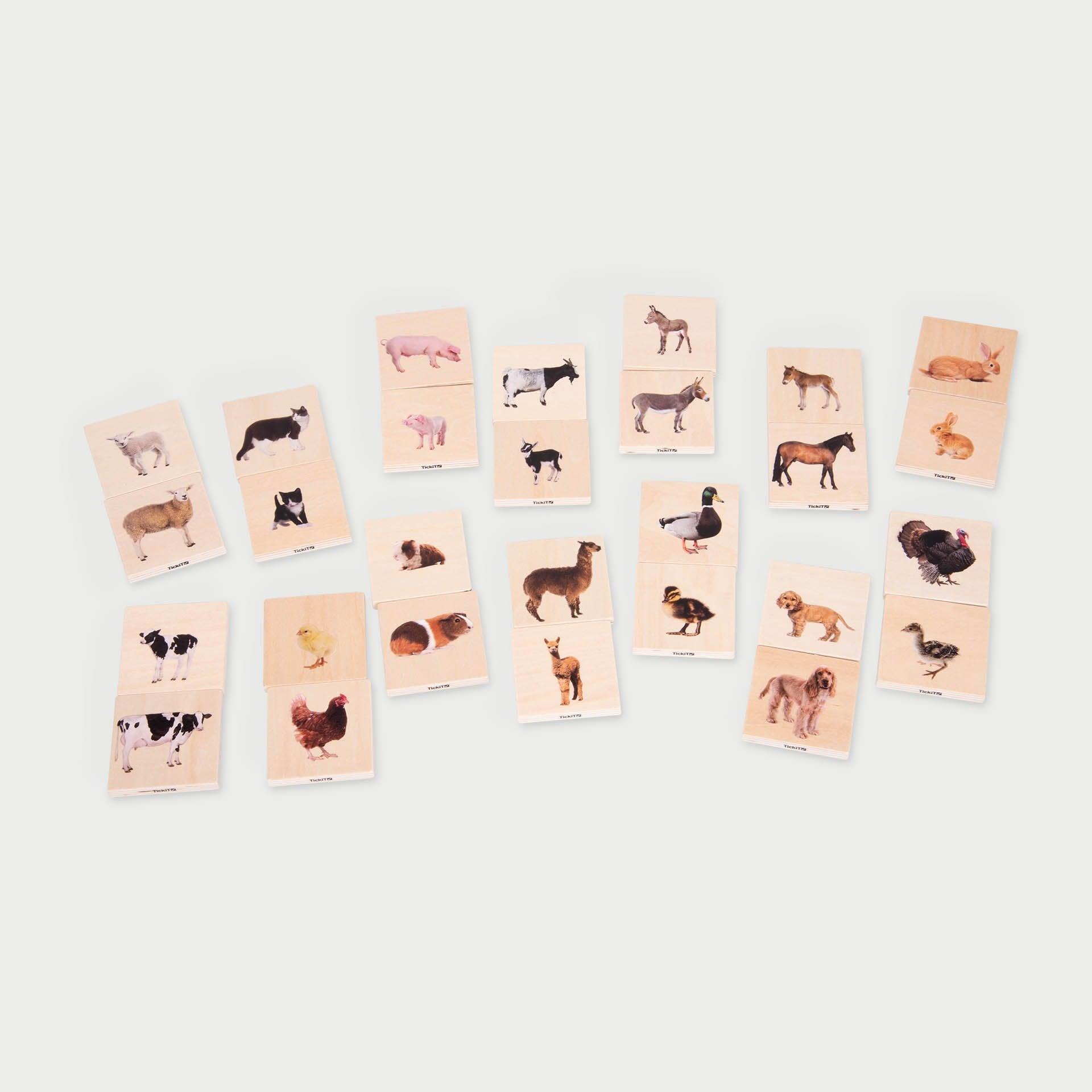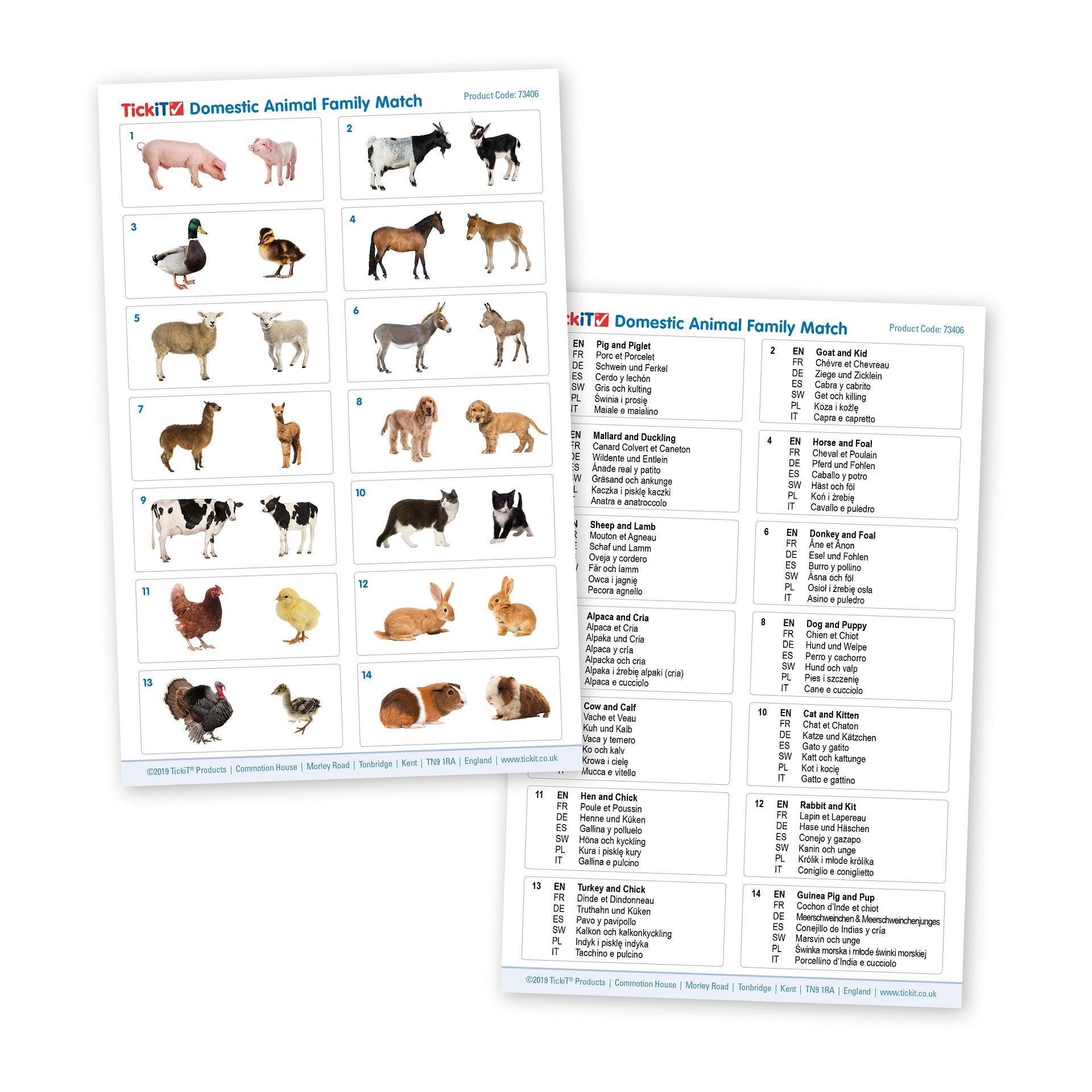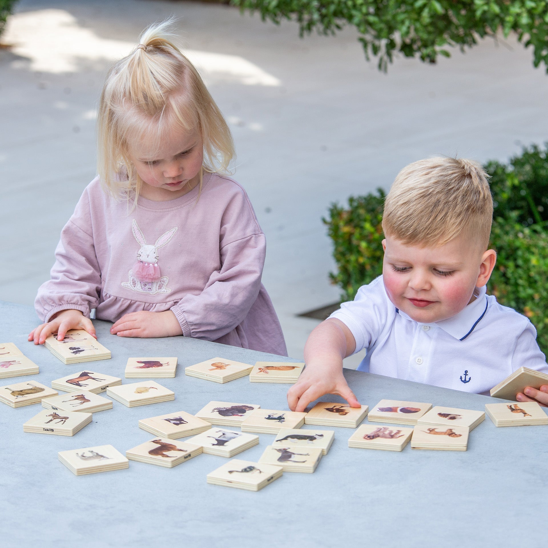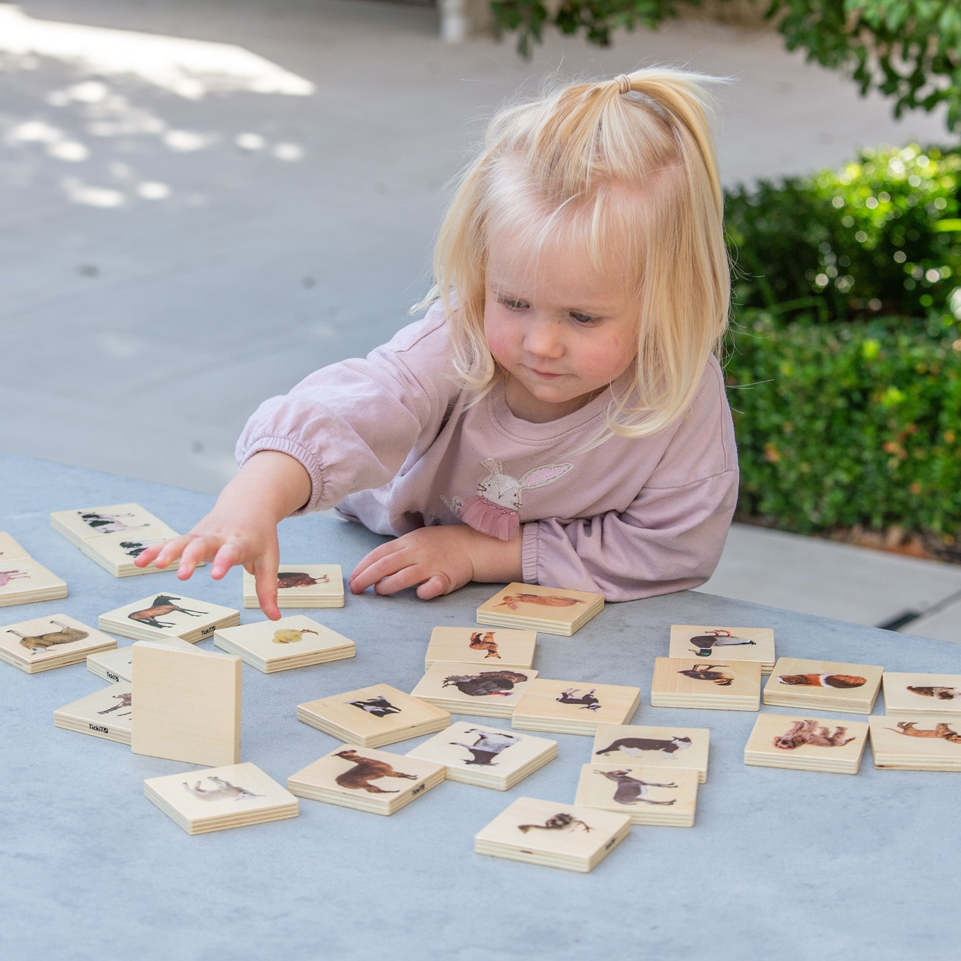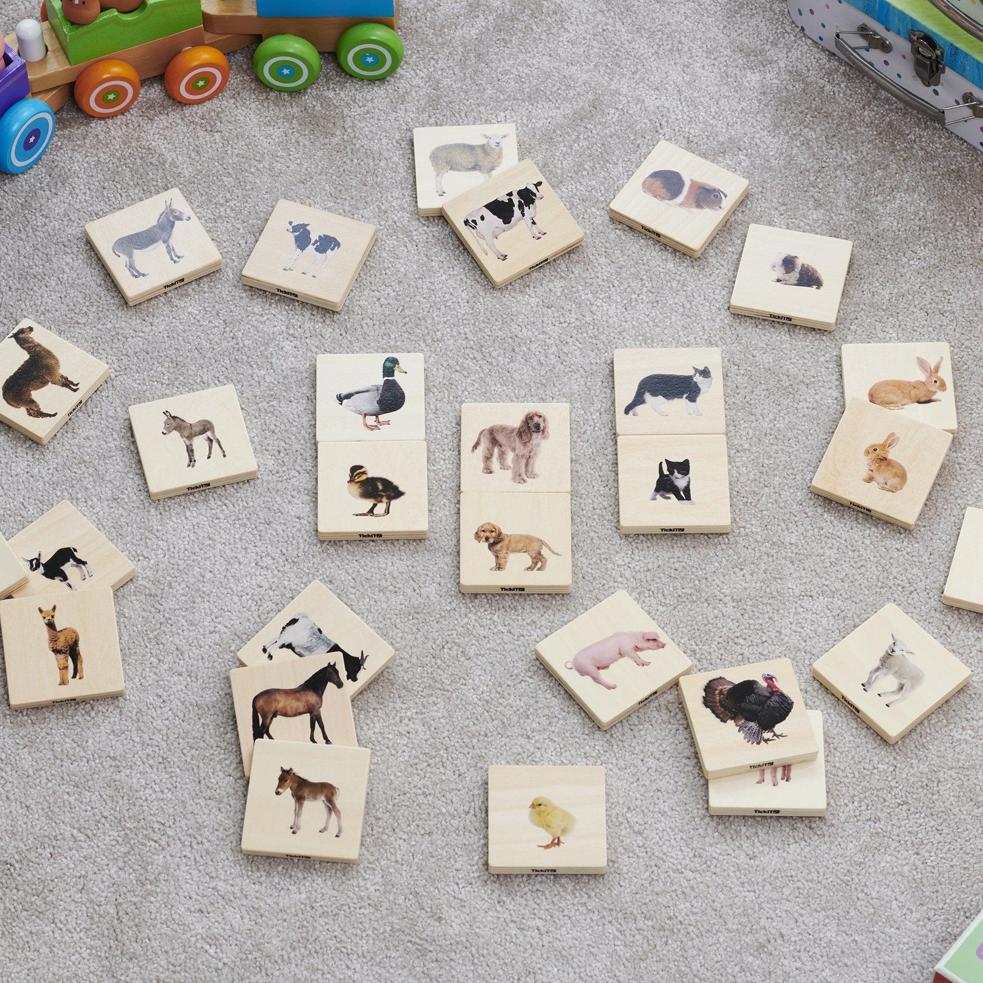 A fun and versatile wooden game, our tickit® Domestic Animal Family Match is a set of fourteen pairs of smooth tactile basswood ply tiles with a clear colour print on one side of real photographic images of adult domestic animals and their young. The square chunky tiles are easy for your child to hold and turn over in their hands.