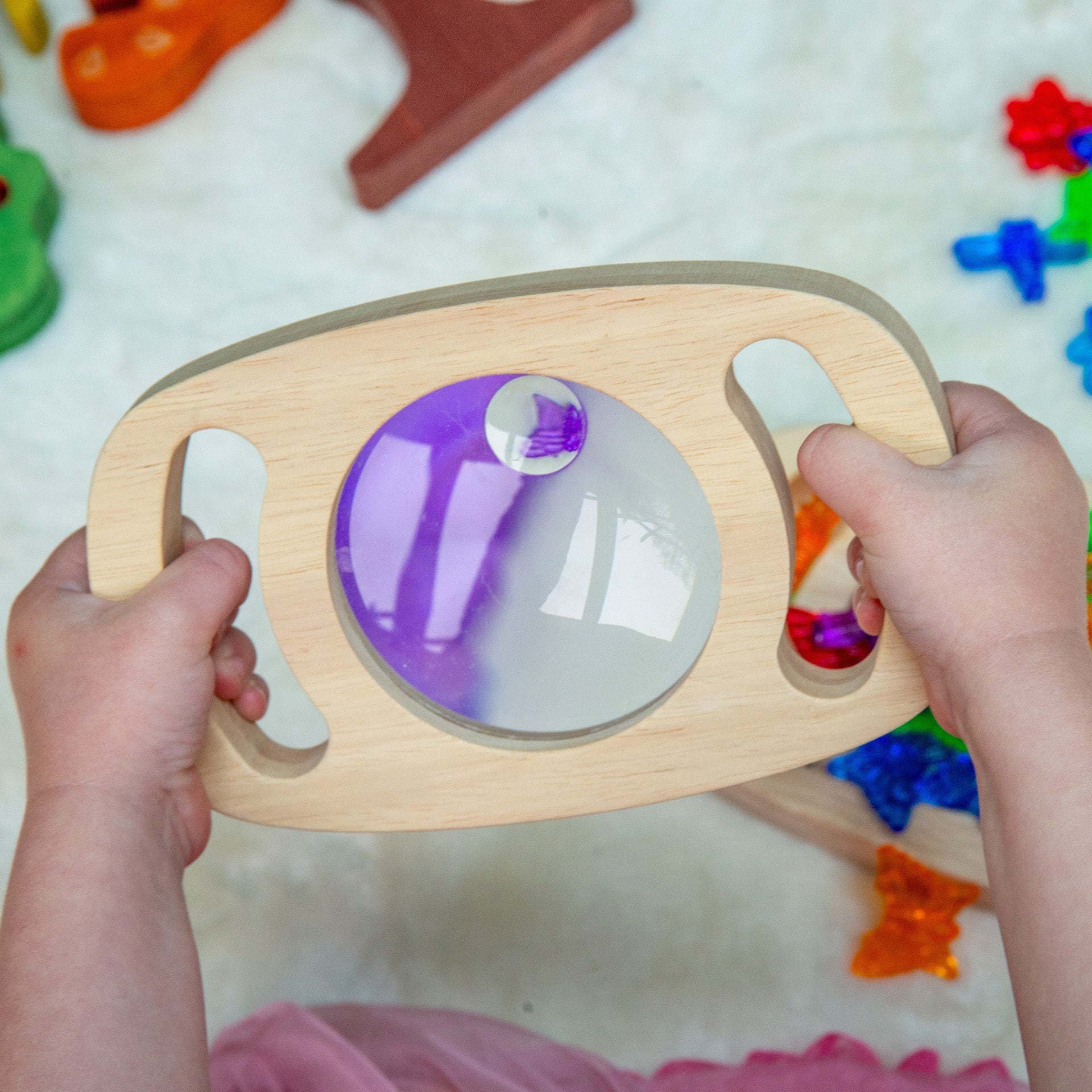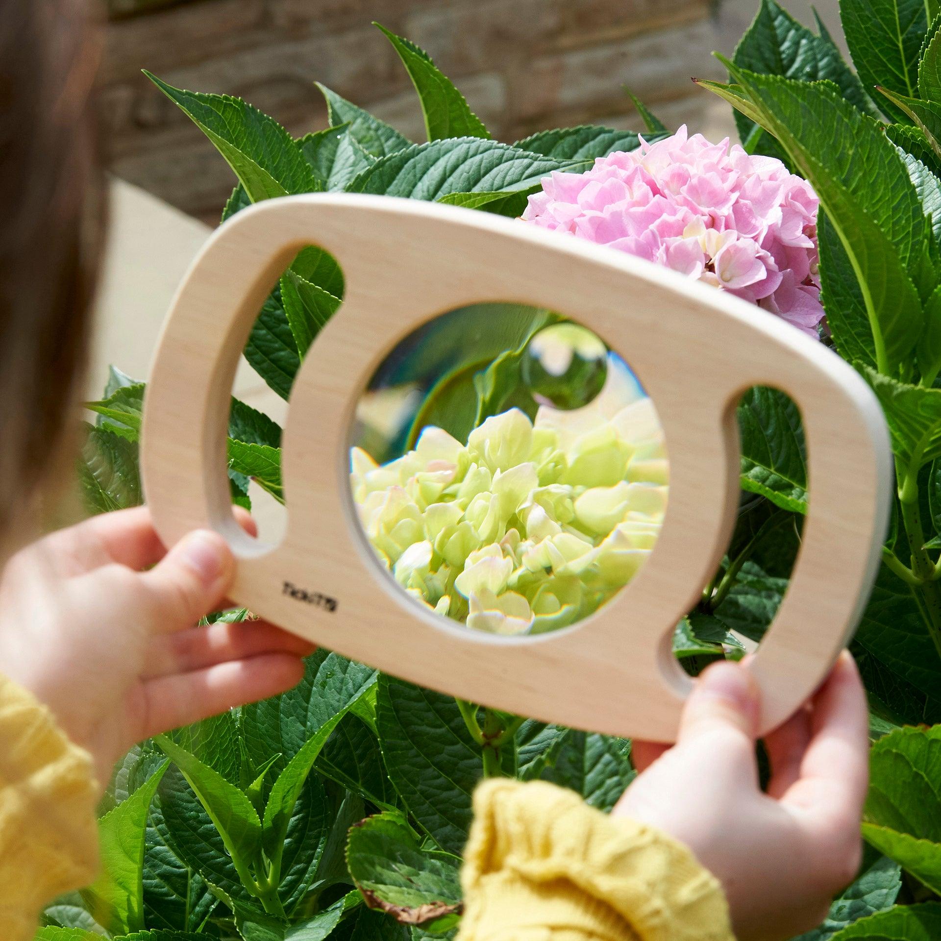 The tickit® Easy Hold Magnifier has a solid rubberwood frame with handles for your child to easily hold independently, with a magnifying lens capable of 2x magnification (with an additional insert lens capable of 3x magnification.) Ideal for observing small items, minibeasts or offering a different perspective on the world around them.Set includes: 1 wooden magnifier.