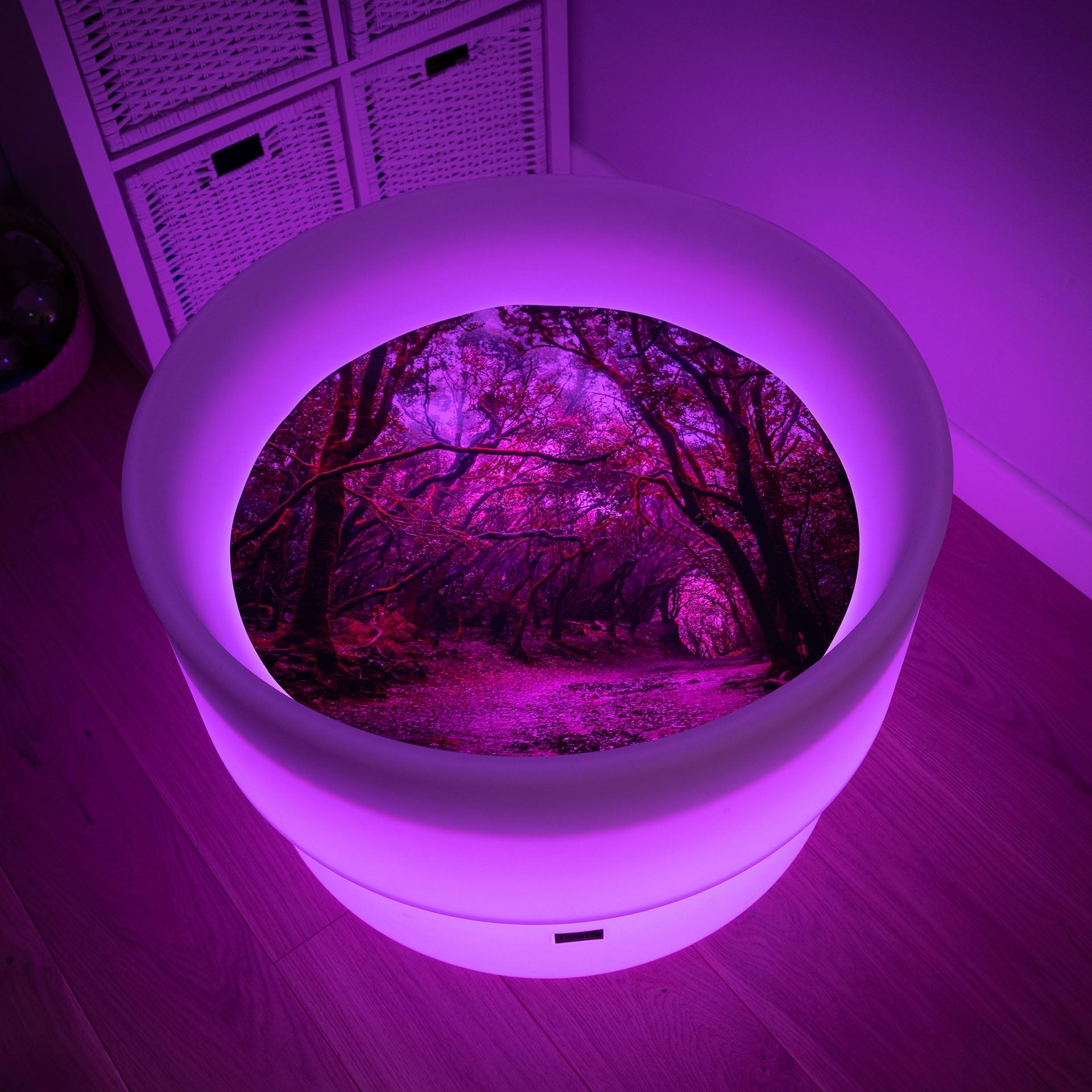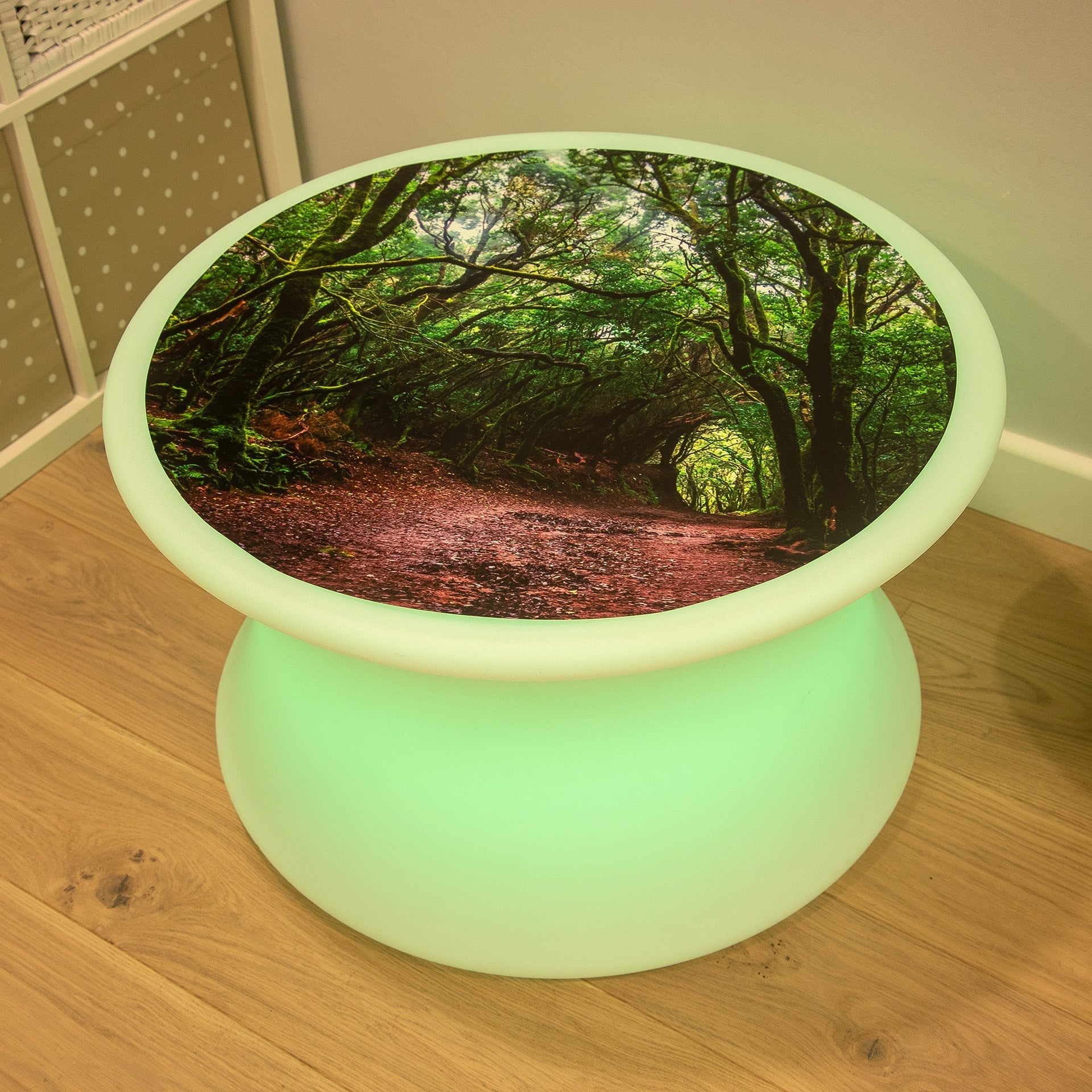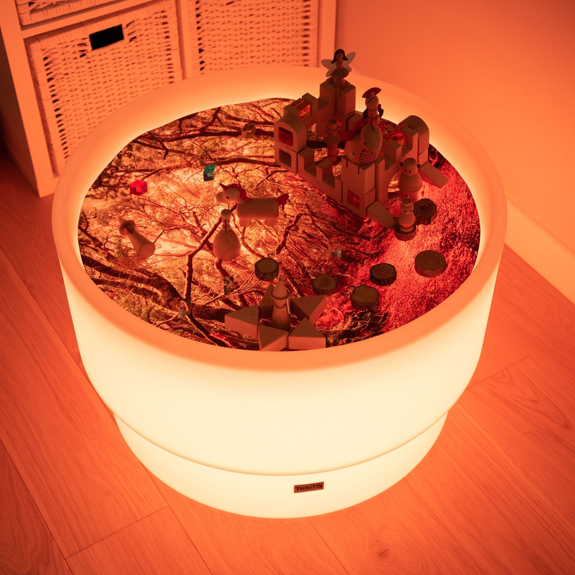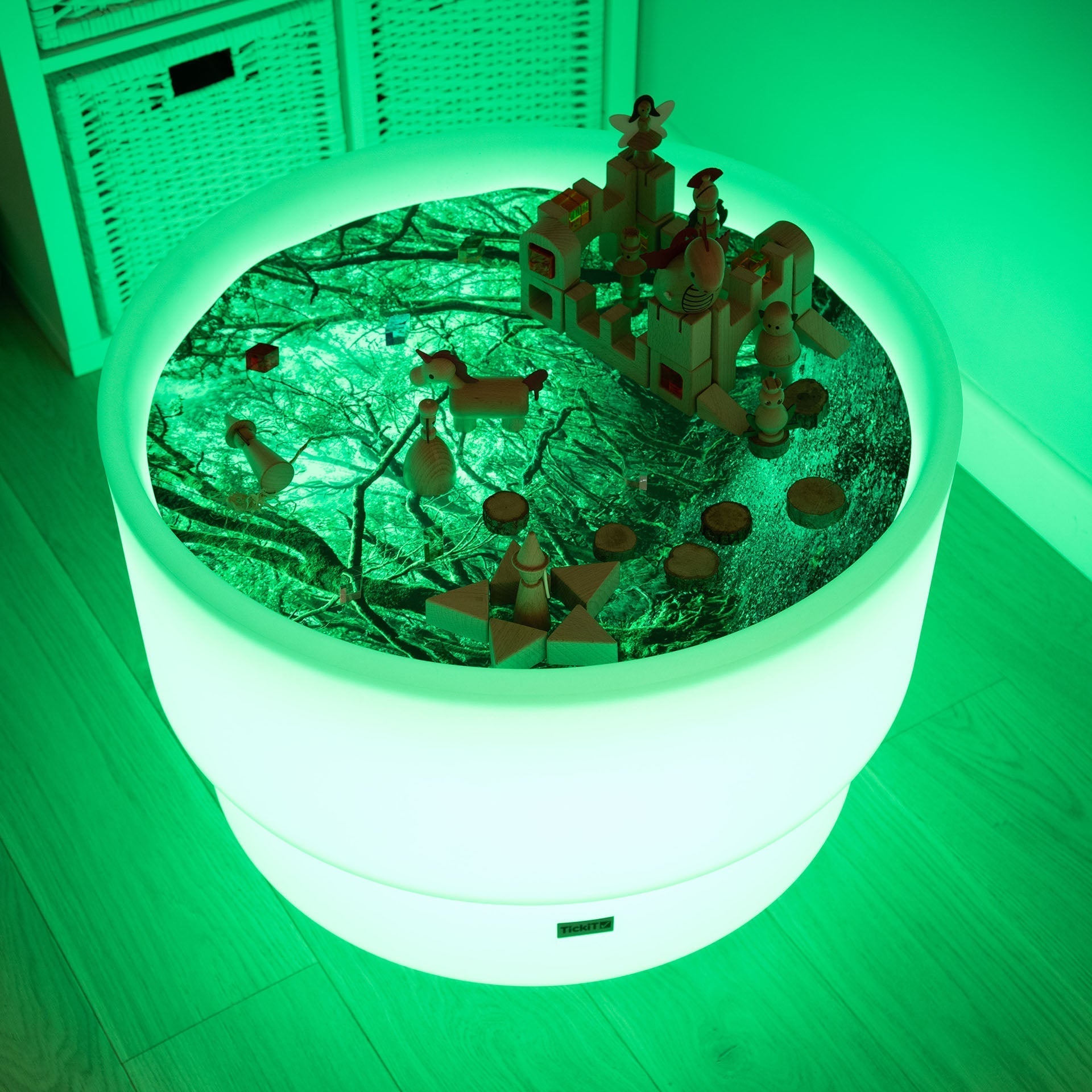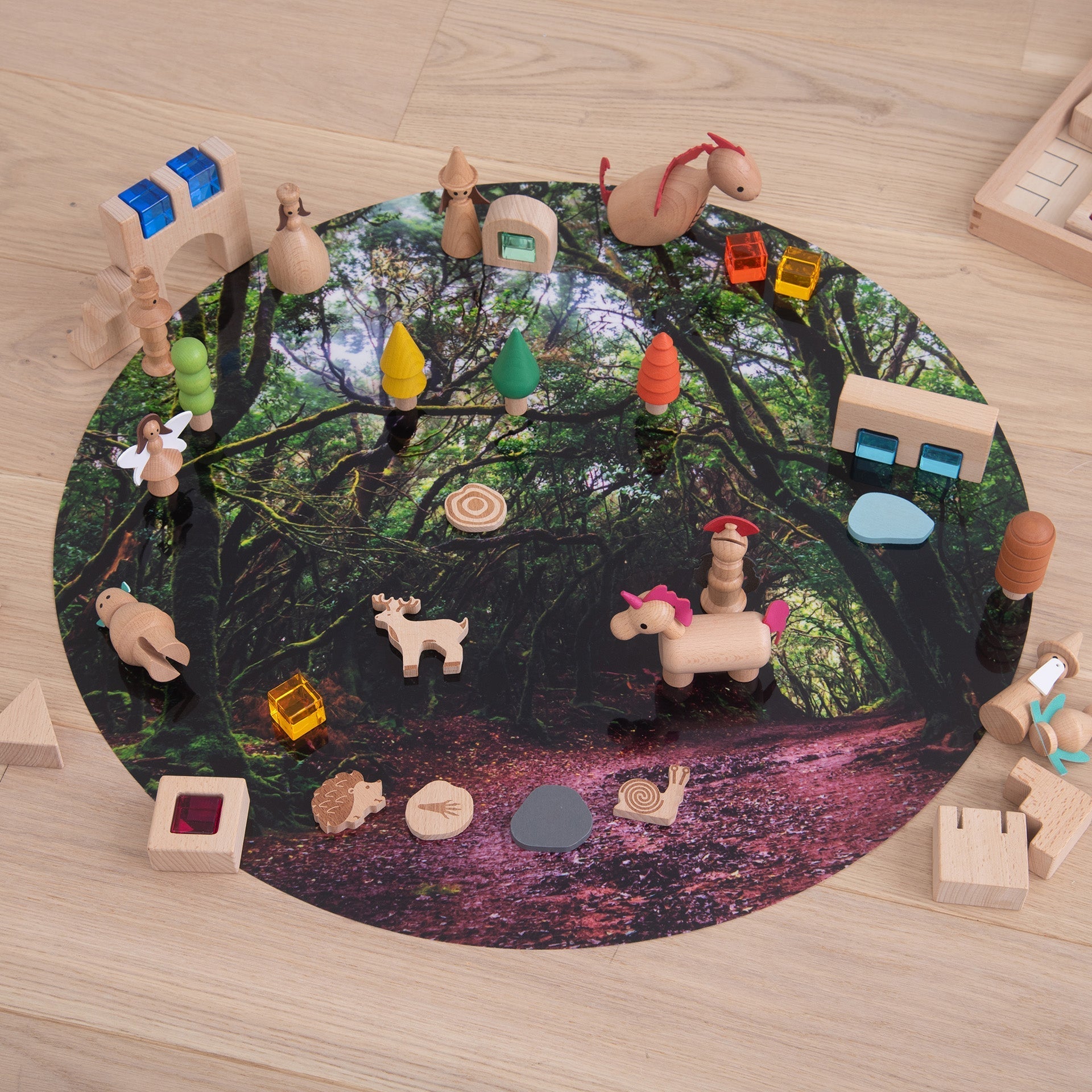 The semi-translucent qualities of the play mat make it ideal for use with a light panel or mood table, captivating your child's curiosity as the light illuminates the images. Different coloured light will intensify the colours of the images, making them more striking and engaging. A great way to explore colour as well as the forest!