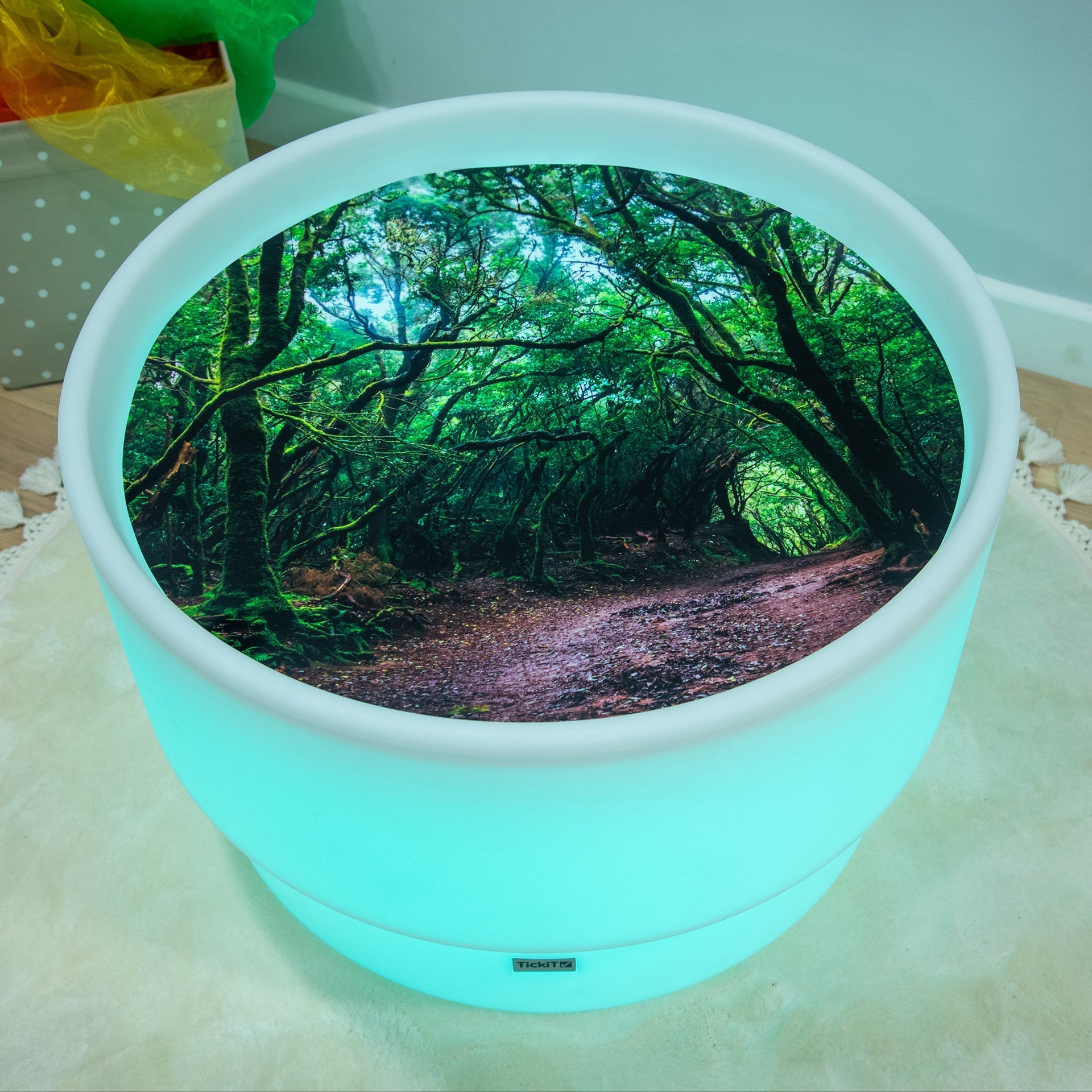 The tickit® Forest Discovery Play Mat takes your child on a woodland adventure through high definition imagery of a pathway through the woods surrounded by a canopy of beautiful trees. There is no limit to the magic of their imagination as they journey through nature to discover the secrets of the forest.Designed to fit perfectly inside the tickit® Sensory Mood Discovery Table and tickit® Sensory Mood Water Table, it is ideal for small world play, sensory stimulation, imaginative play and encouraging descriptive vocabulary. Made from durable polyester it is robust and easy to clean.