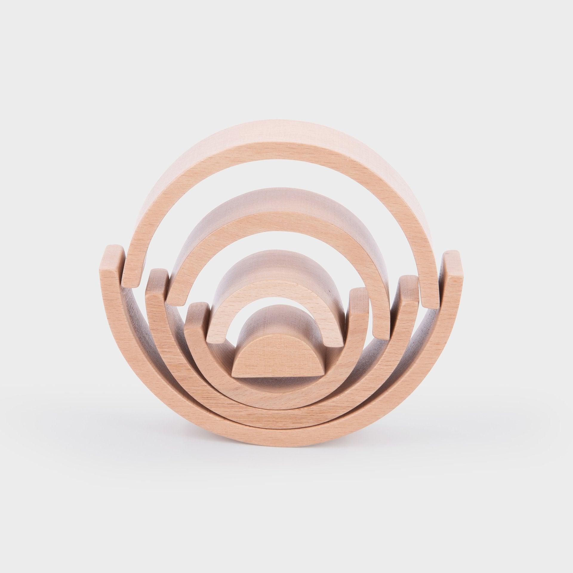 Our tickit® Natural Architect Arches are made from beautiful smooth solid beechwood with a natural woodgrain finish. The arches nest together as a set with the inner block being a solid 3D semicircle.