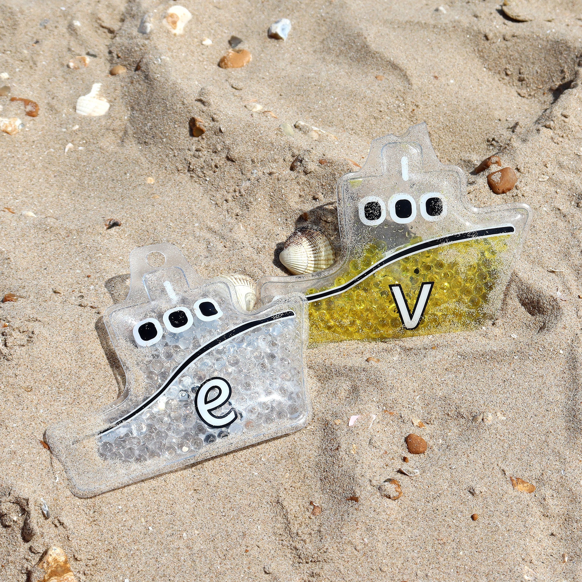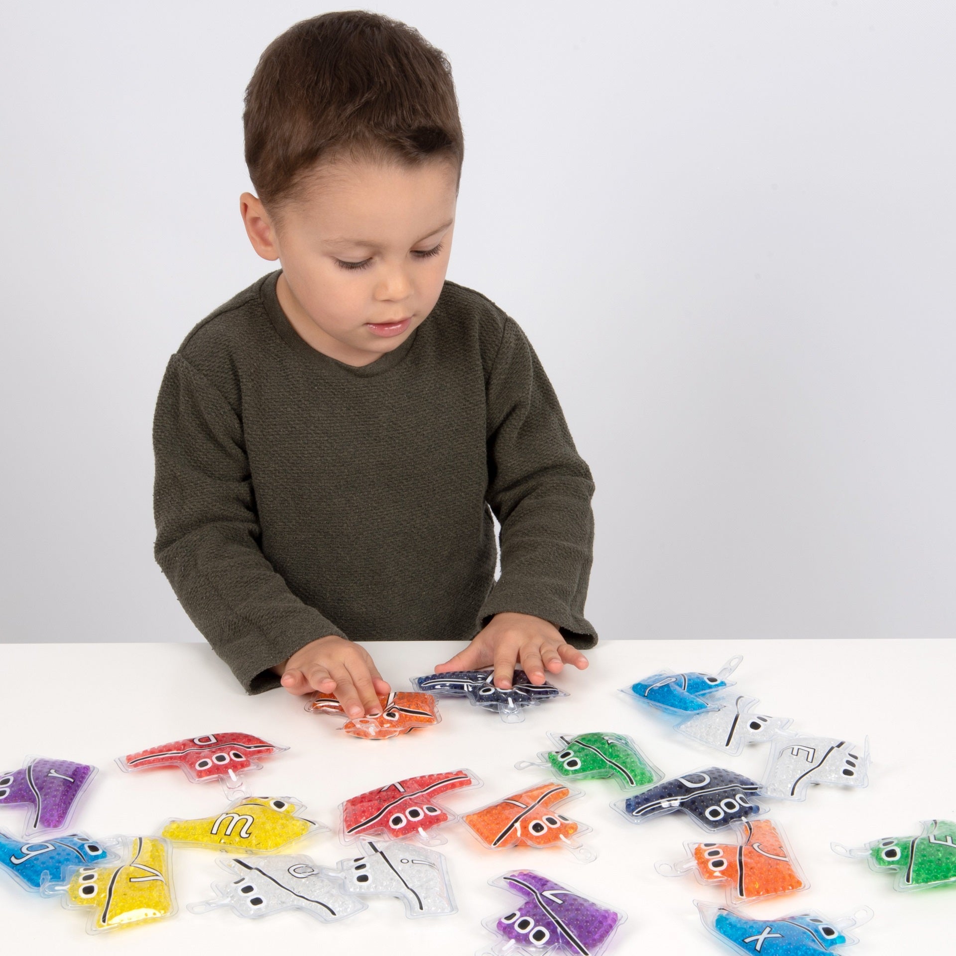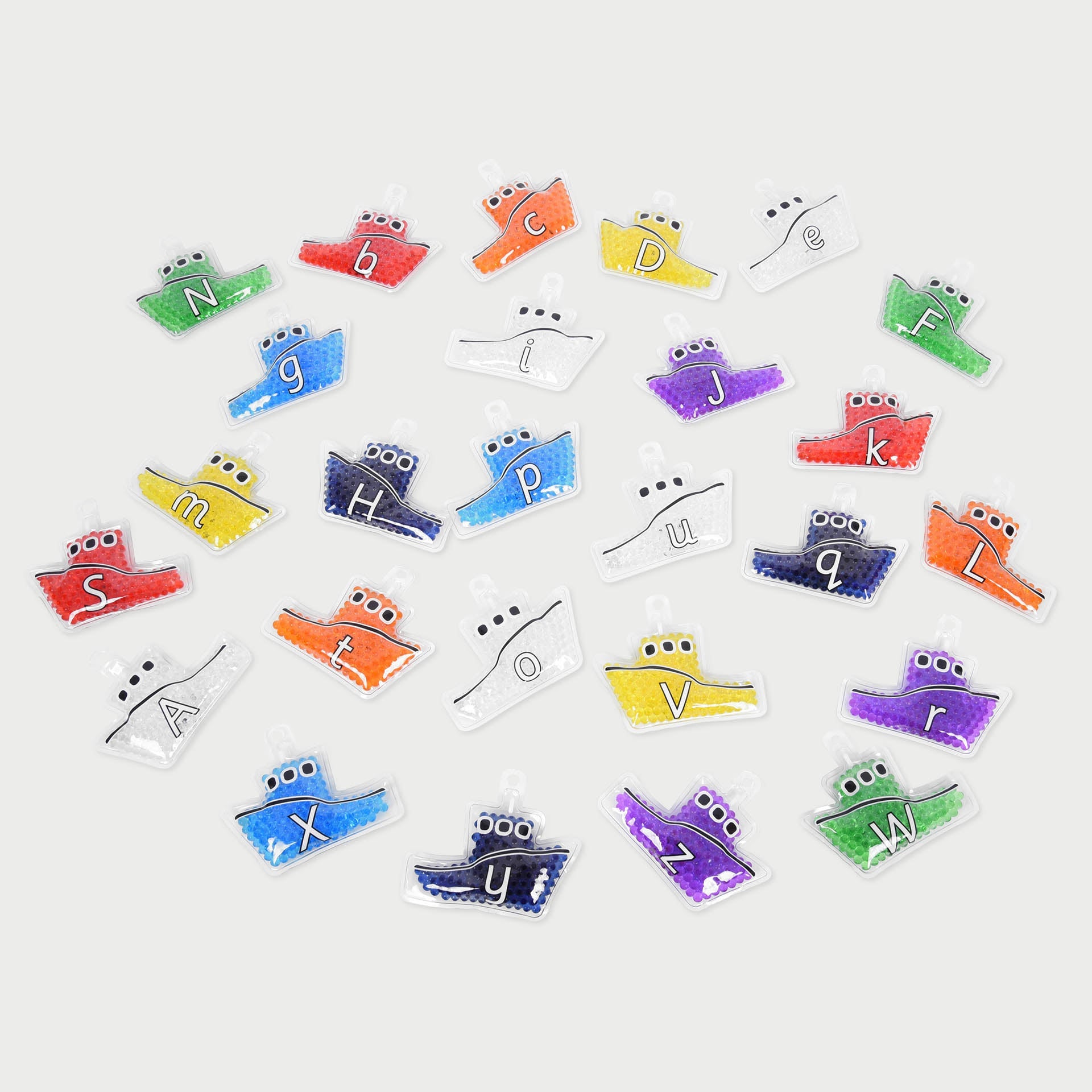 The vibrant and tactile squidgy boats contain gel-like beads in the seven different colours of the rainbow. The texture and colour of these alpha boats will capture your child's attention and curiosity, supporting them with learning letters and sounds, the order of the alphabet, the difference between consonants and vowels, colour recognition and colour-mixing.