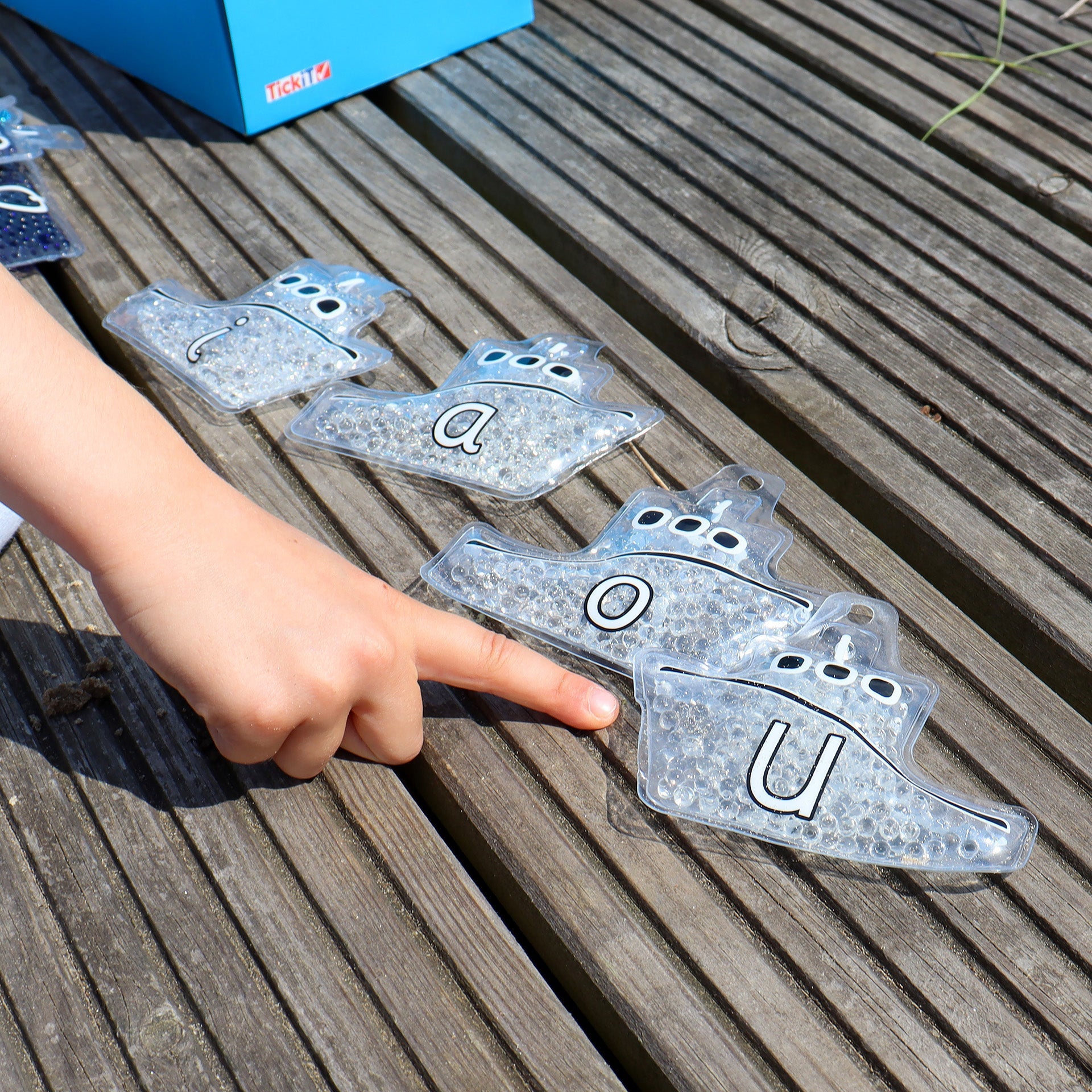 Set sail on a sensory adventure with our tickit® Rainbow Gel Alpha Boats! Attractive, colourful alphabet boats with capital letters on one side and corresponding lower case letters on the other side. Vowels have transparent filling for easy identification and differentiation.