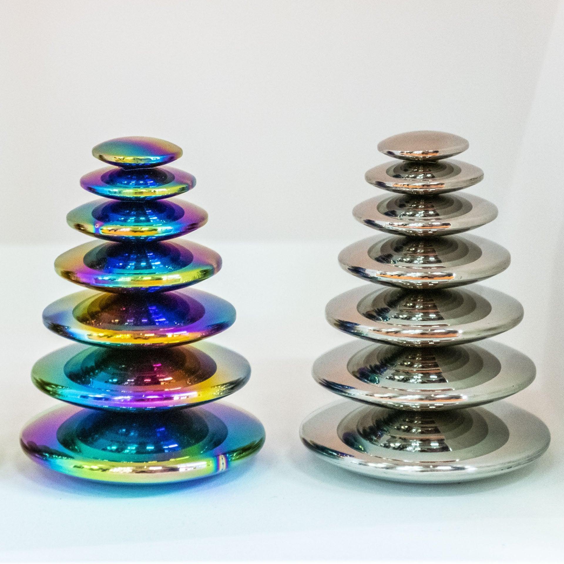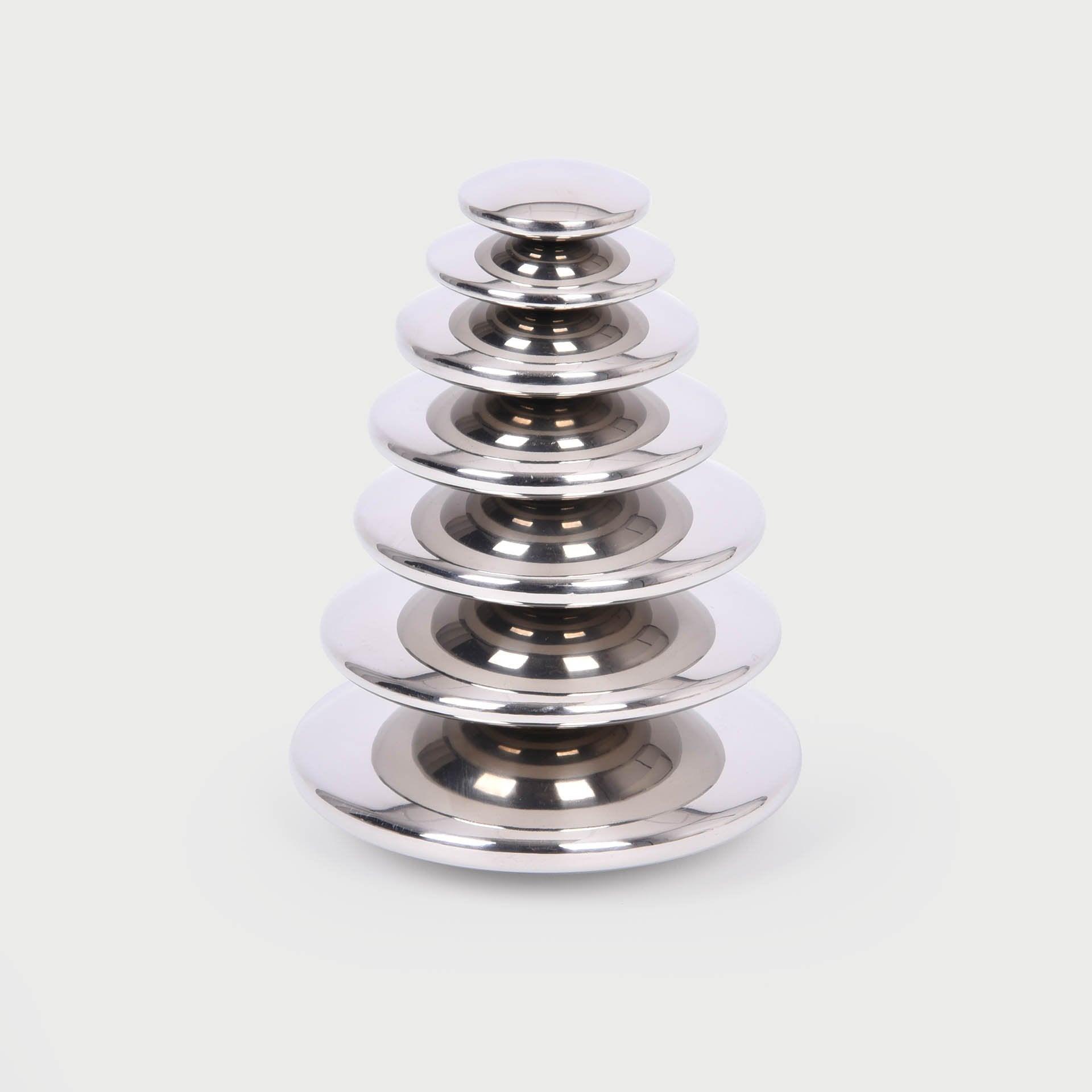 tickit® Sensory Steel Silver Buttons are tactile and reflective and allow your child to create fantastic and fun wobbly stacking towers. The seven giant silver buttons have a smooth silvery mirrored surface and are graduated in size from 5cm to 14cm diameter discs.
