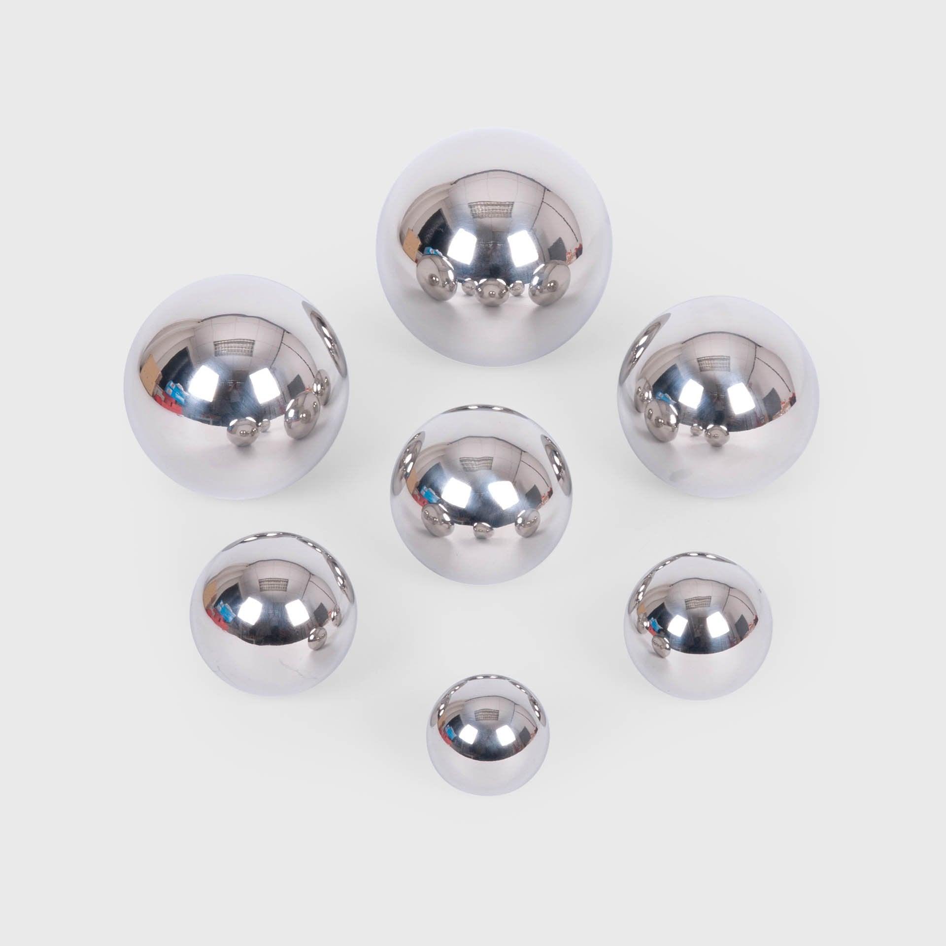 "Children love looking at their reflections and hearing the different sound effects made by these sensory, shiny balls which are made from stainless steel. Each of the seven mirrored balls comes in a different size and contains objects that produce sounds like soft and loud chimes."