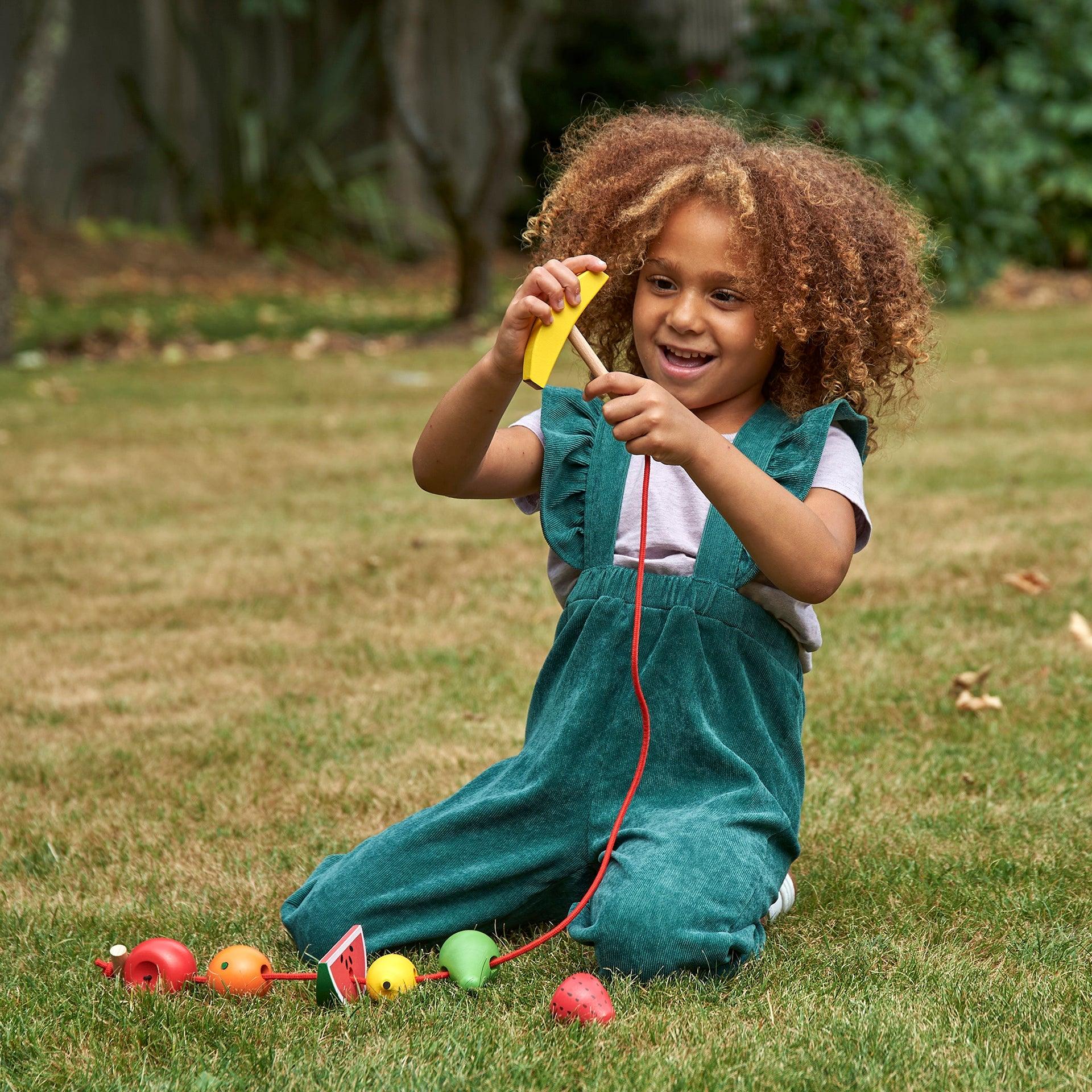 Our tickit® Wooden Lacing Fruit Set contains a selection of beautiful brightly coloured hemu wooden fruits with hand painted detail. Each fruit contains threading holes and there are two strings with wooden threaders and stops so your child can create delicious fruit kebabs.