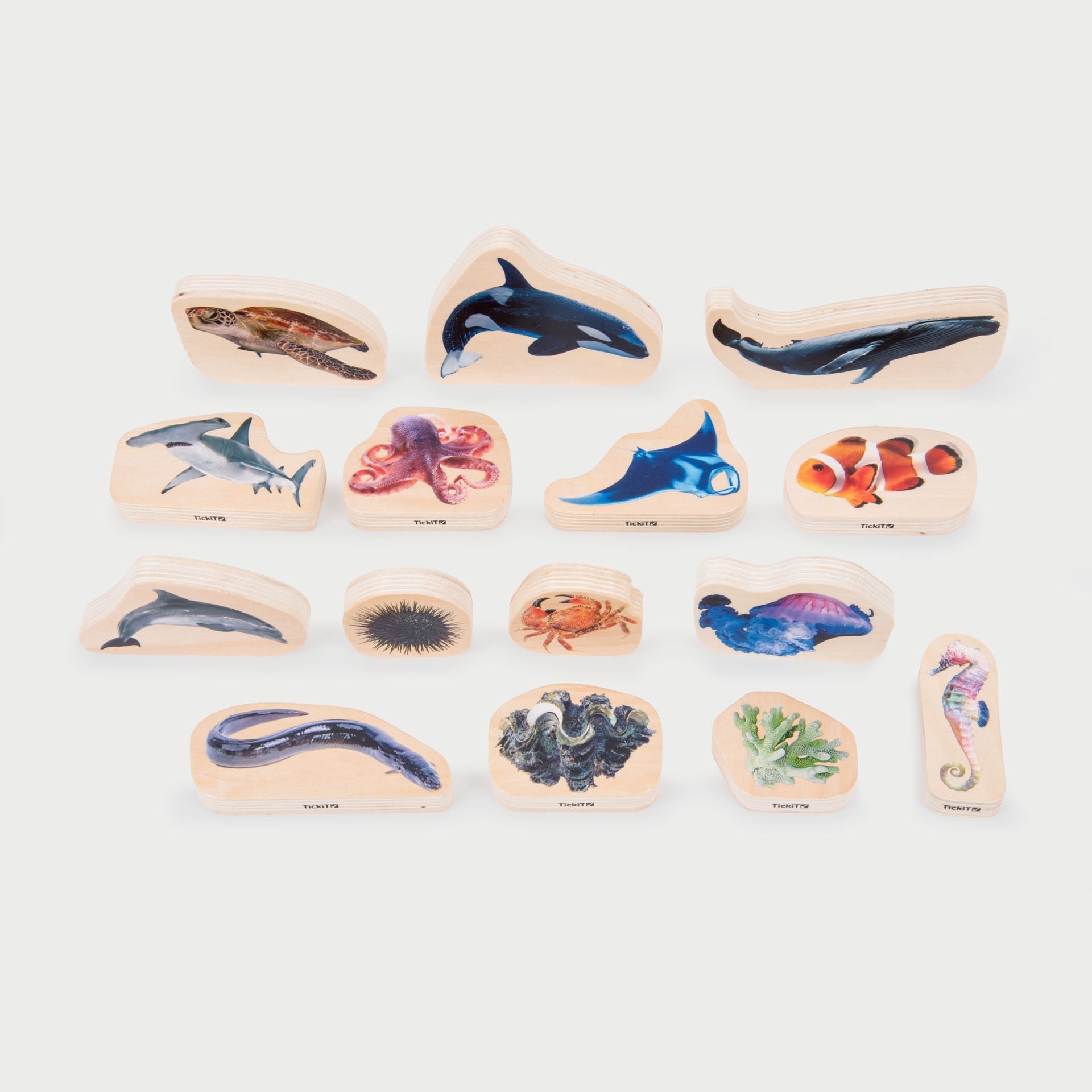 Make a splash with our tickit® Wooden Sea Life Blocks! Our smooth and chunky picture blocks are perfect for little hands; lightweight and tactile, your child will enjoy discovering the wonders of life under the sea. Made from basswood ply and with photo realistic imagery printed on both sides, the blocks are colourful and eye-catching, encouraging your child to learn more about sea creatures and marine life from all over the globe.